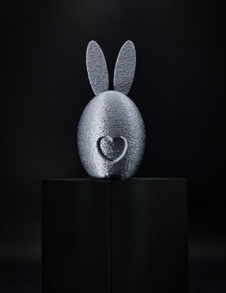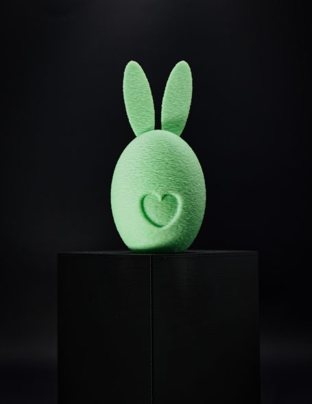 Dieses dekorative Oster-Ei mit Hasenohren wird im 3D-Druckverfahren aus PLA gefertigt und ist ein moderner Hingucker für dein Zuhause. Das schlichte Design mit integriertem Herz verleiht der Deko eine besondere, liebevolle Note.